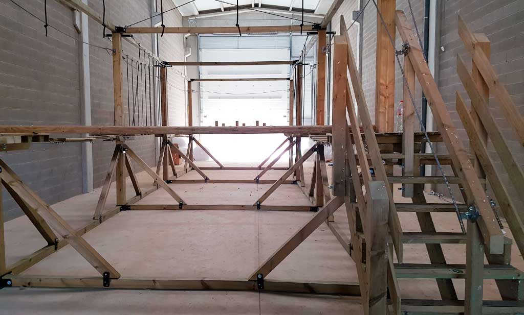 Parques de aventura móviles que se adaptables a todo tipo de espacios y necesidades. Este tipo de instalación recreativa, diseñada para ser montada y desmontada con rapidez, es perfecta para eventos temporales, actividades escolares, festivales, ferias, eventos corporativos… Nuestros diseños incluyen circuitos con juegos como tirolinas, puentes colgantes, redes y zonas de obstáculos adaptadas a distintas edades y niveles de habilidad. Gracias a su formato modular y a la utilización de materiales homologados y resistentes, garantizamos que cada parque se pueda instalar en interior o exterior con total seguridad.